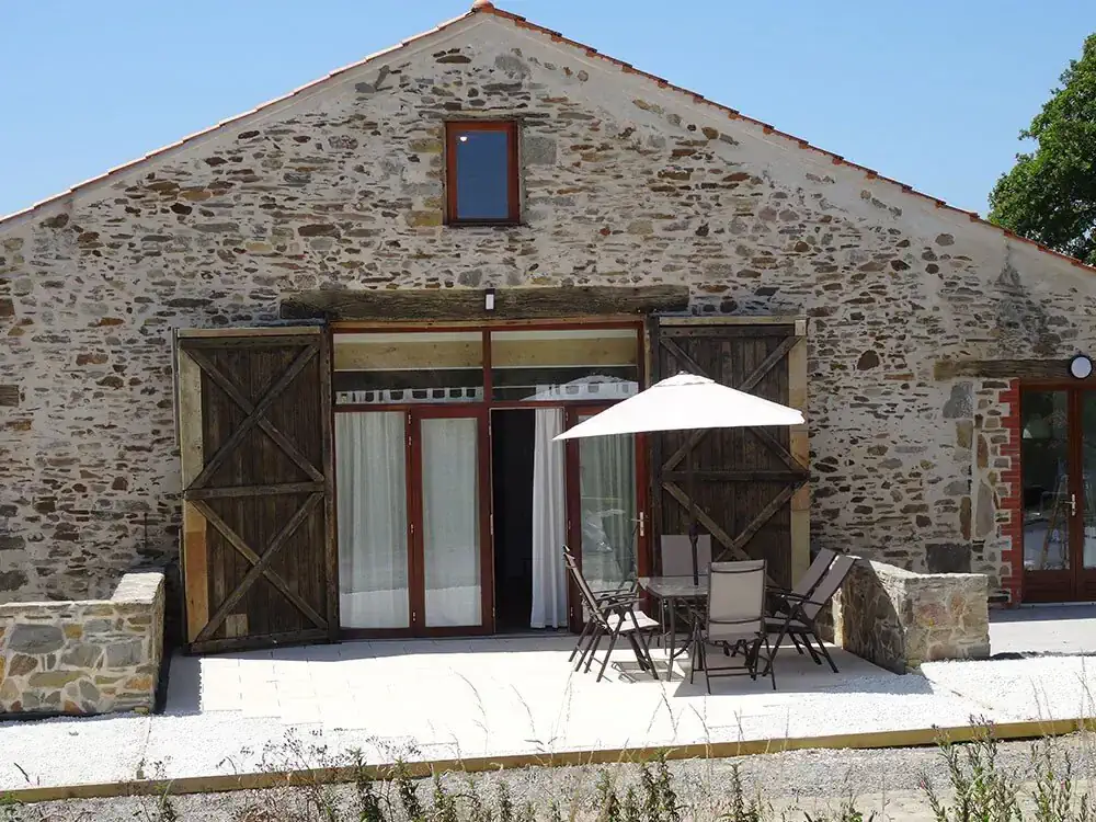 La Salle des Fétés has a very large, private, west-facing terrace offering views of the Vendéen countryside and spectacular sunsets – a perfect place to relax with a glass of wine, read a book or enjoy eating in the ‘plein air’. There is a large outdoor dining table with parasol and the terrace also enjoys the shade provided by two trees planted specifically for this purpose. Salle des Fétés has direct access to the shared pool from its terrace.